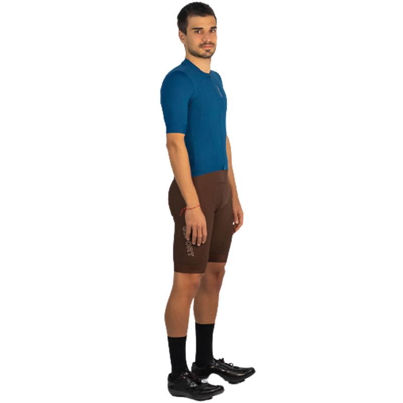 Una prenda de estructura simple, confeccionado con colores sólidos. Un patrón más regular y menos ajustado, pero suficientemente aerodinámico. Terminación Bonding en la cintura y goma elástica siliconada en la parte de la espalda, para fijar el maillot en su posición.