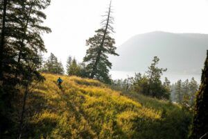 W’s Long-Sleeved Dirt Craft Jersey: una camiseta de manga larga para ciclismo de montaña hecha de poliéster reciclado con spandex reciclado, que tiene un cuello alto, un bolsillo trasero y detalles reflectantes. - W’s Dirt Roamer Storm Jacket: una chaqueta impermeable para ciclismo de montaña hecha de nailon reciclado con una membrana ePE impermeable sin PFCs, que tiene una capucha ajustable, ventilación bajo las axilas y puños elásticos.